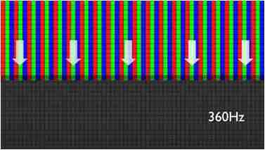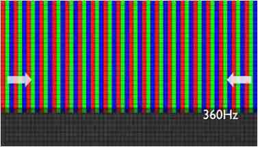 传统液晶驱动是从左到右单向进行,,,,在画面更新速度愈来越愈快的情况下,,位于驱动线路末端的右下角区域,,画素的闸极来不及在短时间内获得足够电压,,,,无法显示出正确的颜色资讯。。。。